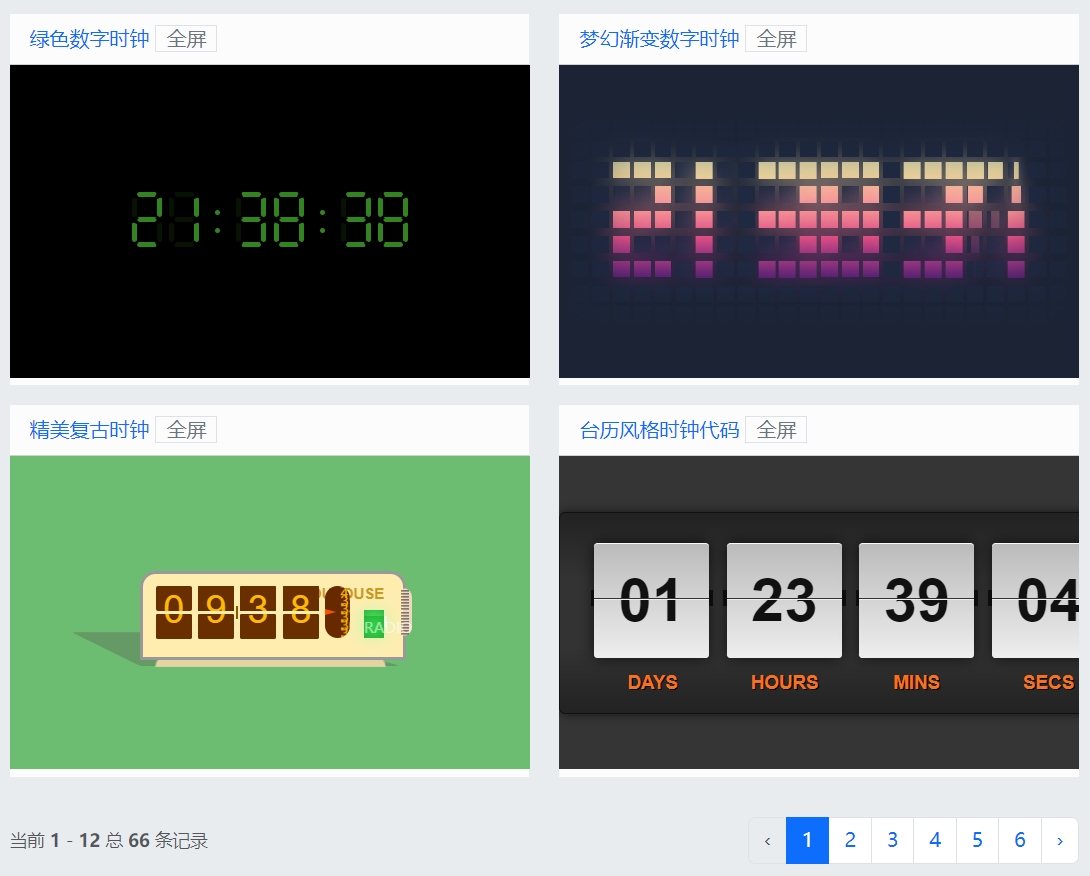 这是一款网页版全屏时钟,有60多种网页时钟可以选择。