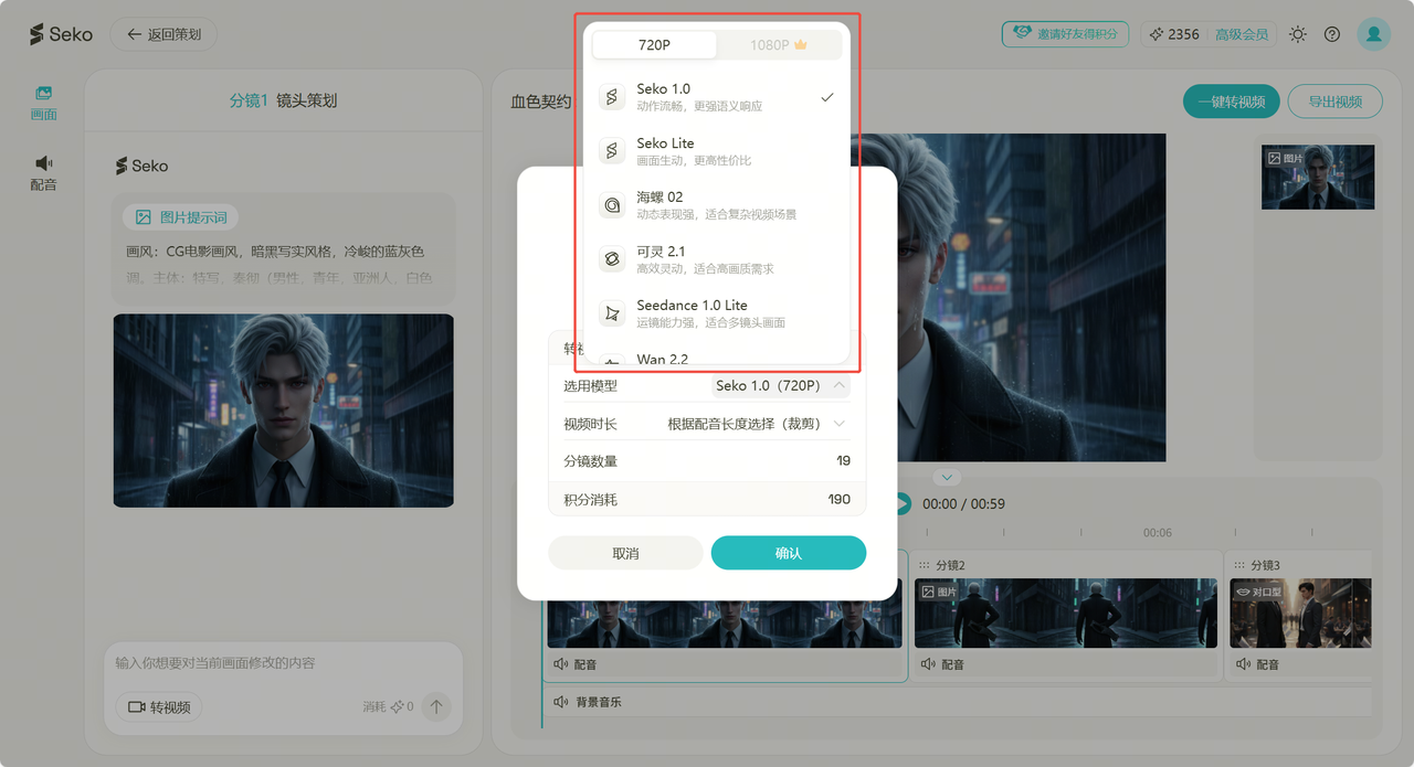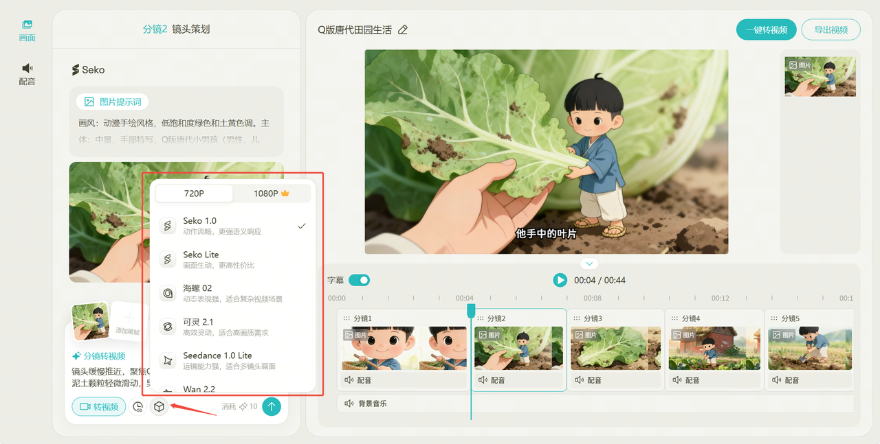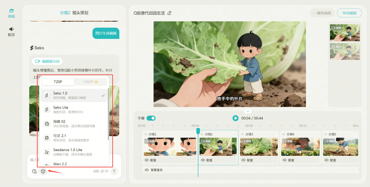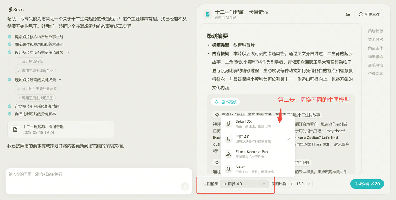 支持用户输入已有剧本,Seko自动拆解剧本,生成接下来的视频策划案;