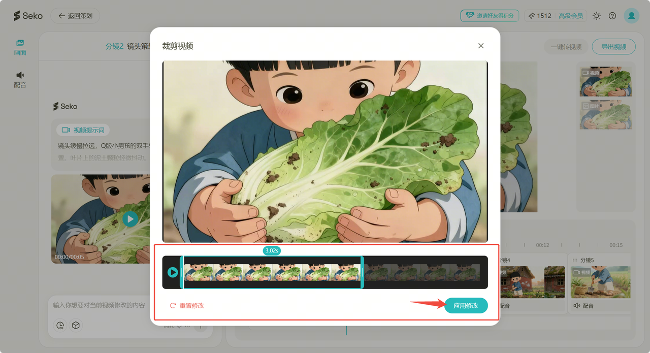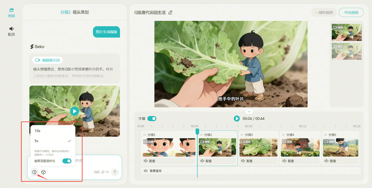 ![]() 视频生成后 – 选择任意分镜图 – 点击视频提示词【编辑】或agent对话框修改提示词 – 选择视频模型 – 选择视频时长- 即可修改当前分镜视频